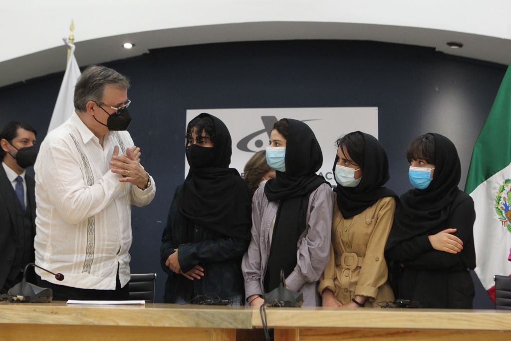 Canciller @m_ebrard, en el recibimiento al grupo de mujeres de Afganistán en ??. pic.twitter.com/9M4SkMUOsz