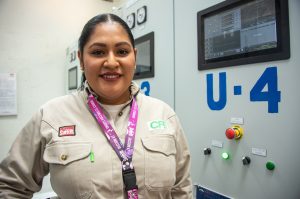 En centrales hidroeléctricas como Bombaná, Adriana Guadalupe Castellanos participa en mantenimientos preventivos y supervisa sistemas clave, desde reguladores hasta generadores y bancos de baterías.